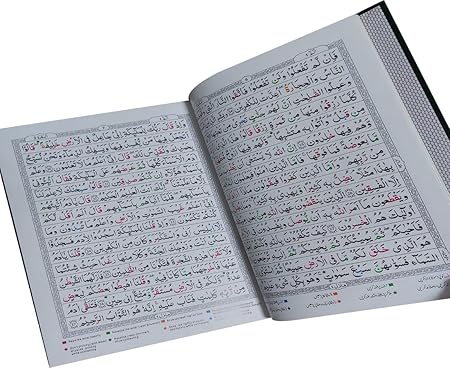 The Holy Quran Mazeed (17 x 24 cm) features color-coded, word-by-word translation for easy understanding and accurate recitation. Printed in clear script, it is ideal for study and daily reading at home or in the mosque.