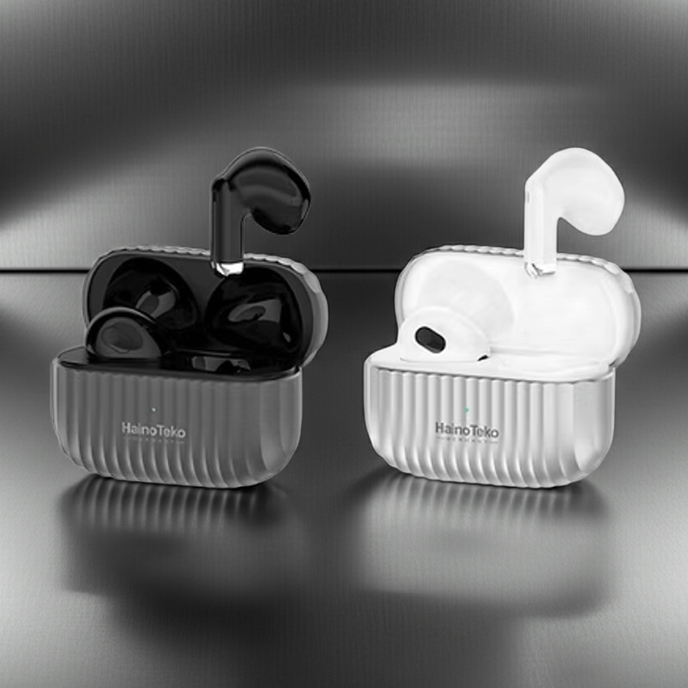 The Haino Teko Air-20 earbuds combine sleek design with ergonomic comfort. Their lightweight build fits securely in your ears, making them perfect for long listening sessions, workouts, or travel. The compact charging case keeps your earbuds powered throughout the day while easily fitting into your pocket or bag.