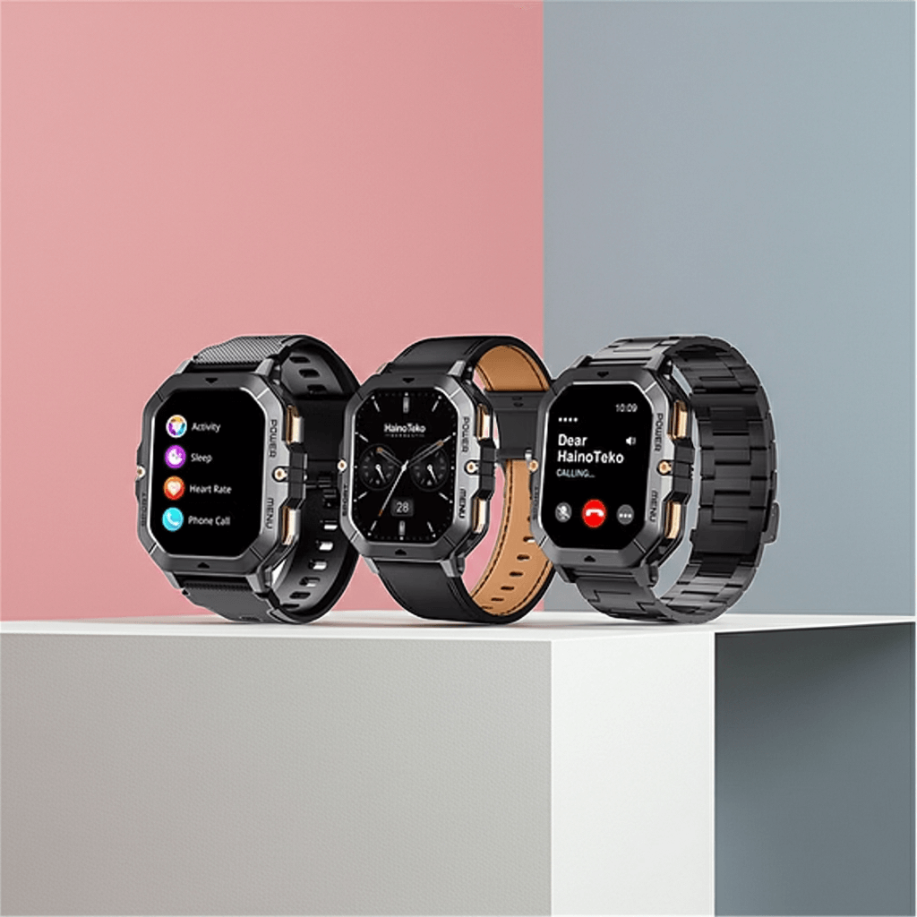 Stay connected in style with the Haino Teko SQ-18 Smart Watch. Enjoy waterproof durability, HD AMOLED display, Bluetooth calls, health tracking, and 3 versatile straps for every occasion.