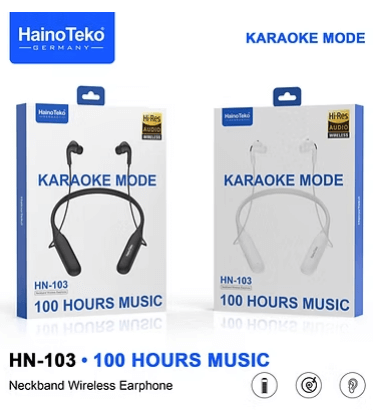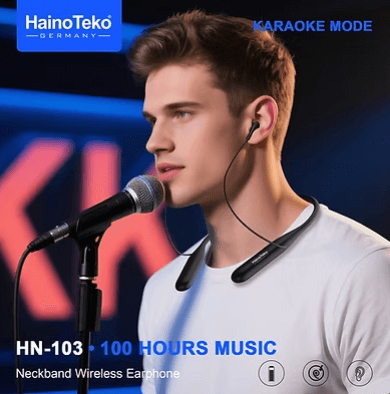 Haino Teko HN-103 Neckband Wireless Earphones, with Karaoke Mode, Hi-Res Audio, Up to 100 Hours Music Playback, Microphone (Black)