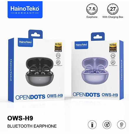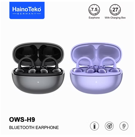 Haino Teko OWS-H9 Germany true wireless earphones deliver powerful high-bass sound with clear, balanced audio for music and entertainment. The super clear microphone ensures excellent call quality. With stable Bluetooth connectivity, they pair easily with Android and iOS devices, offering comfort, portability, and reliable performance for everyday wireless use.