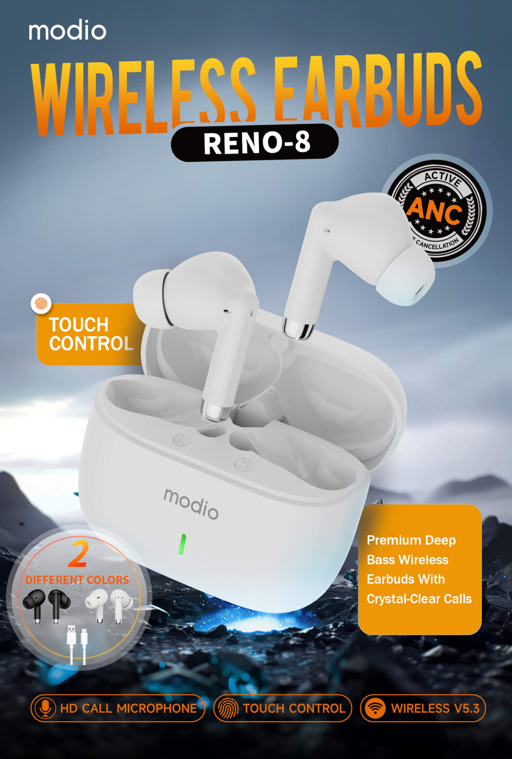 With a modern and sleek finish, the Modio RENO-8 Wireless Headphone complements any lifestyle. Durable construction combined with advanced features makes it a practical choice for students, professionals, and music enthusiasts alike.