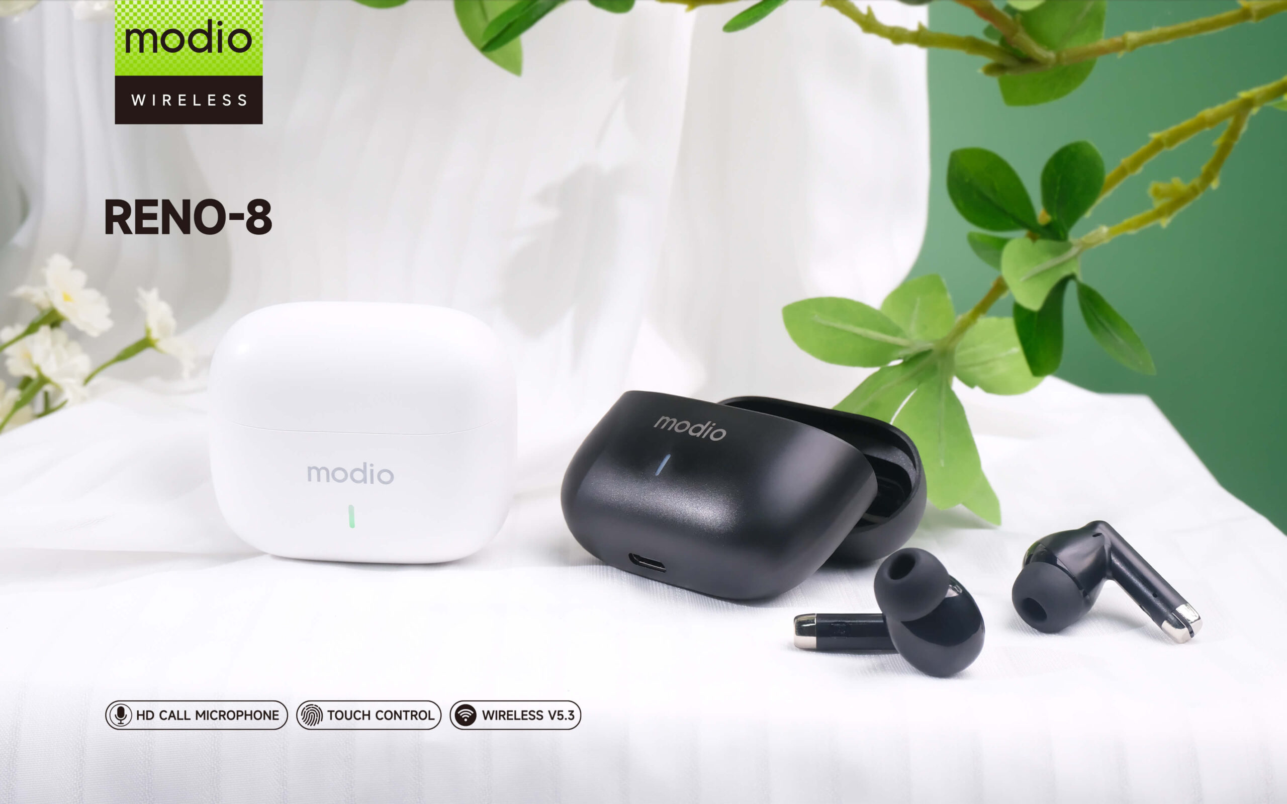 Modio RENO-8 Wireless V5.4 Bluetooth Headphone, HD Call Microphone Touch Control.