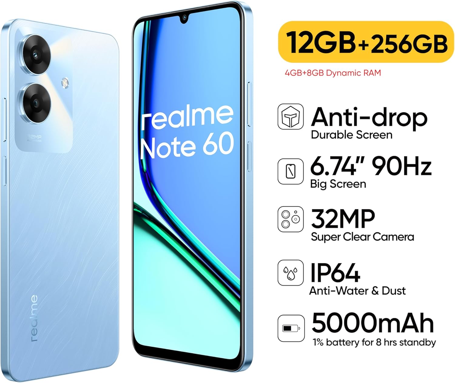 The stylish look combines elegance with durability, making the phone suitable for both professional and casual use. Whether you’re at work, school, or traveling, the Realme Note 60 adds a touch of style to your everyday tech.